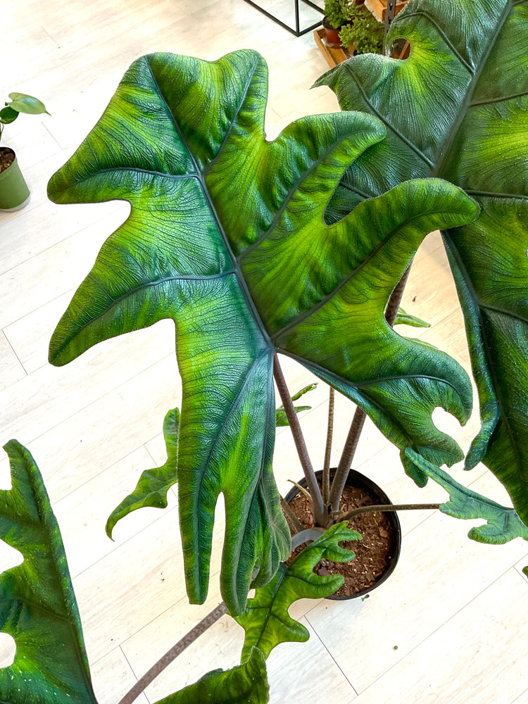 Examples: Alocasia macrorrhiza (Giant Taro), Alocasia sarawakensis 'Yucatan Princess'