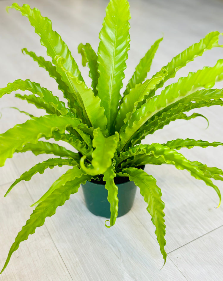 Examples: Asplenium nidus (Bird's Nest Fern), Nephrolepis exaltata 'Bostoniensis' (Boston Fern)