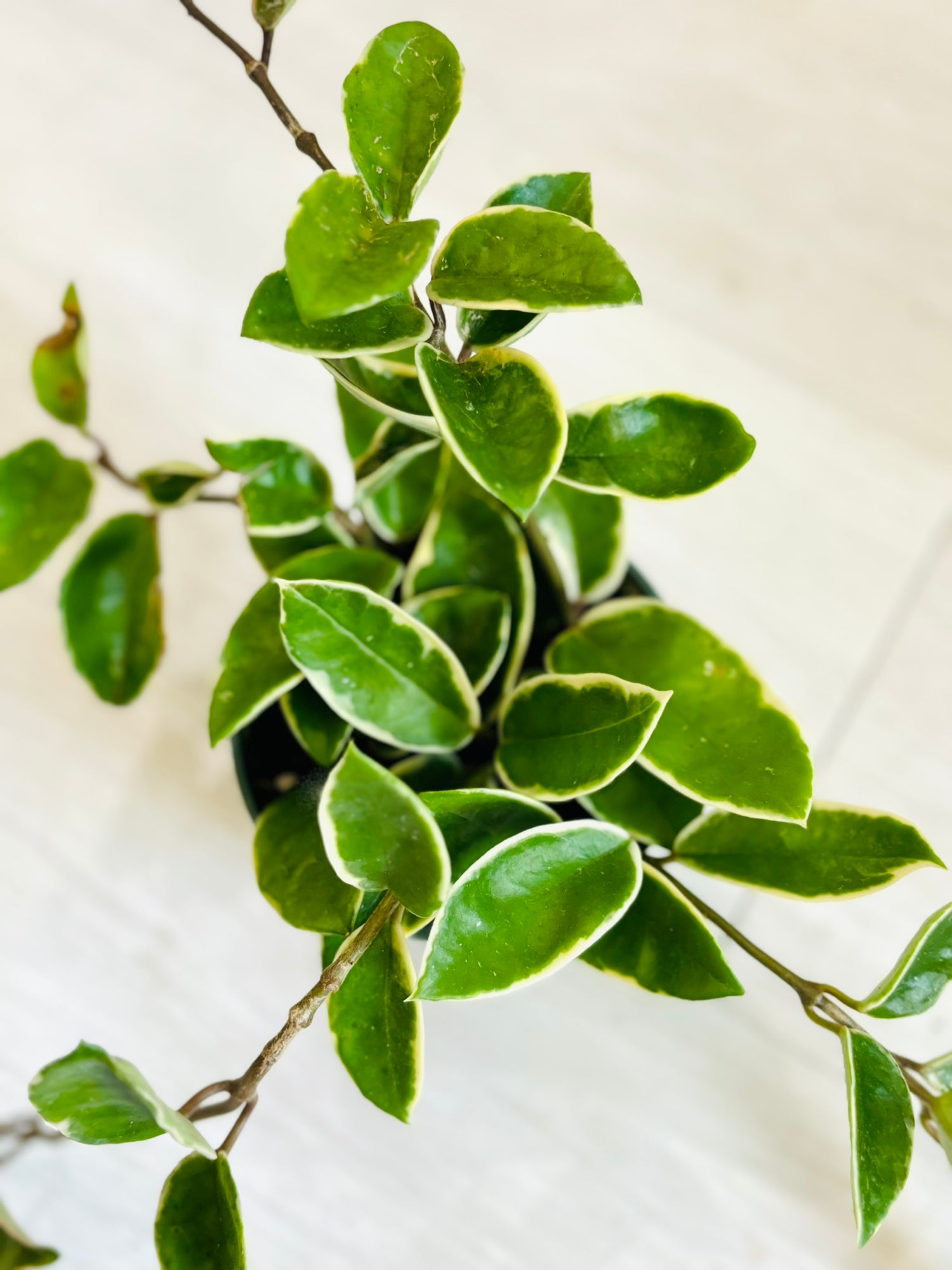 Examples: Hoya carnosa 'Krimson Queen', Hoya carnosa 'Tricolor'