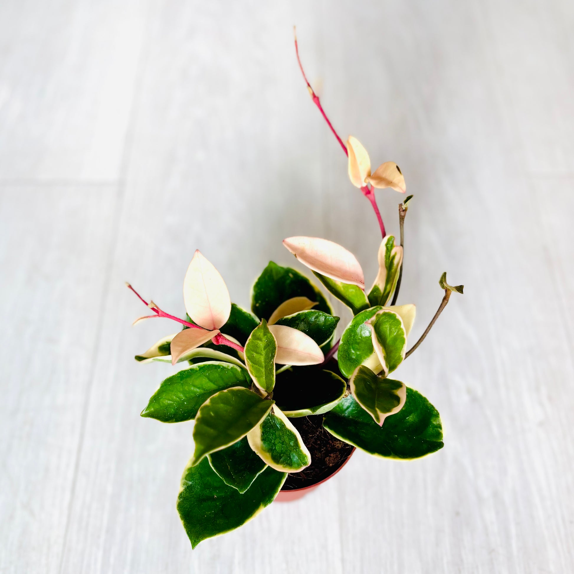 Hoyas are a vast genus of tropical, perennial, evergreen climbing or trailing plants native to Asia and Australia. They are famous for their thick, waxy, often glossy leaves and their clusters of small, star-shaped, fragrant flowers that resemble porcelain. Hoyas are epiphytic or lithophytic in nature, meaning they grow on trees or rocks rather than in soil. They are highly valued for their ease of care and unique foliage. Find our care guide here!