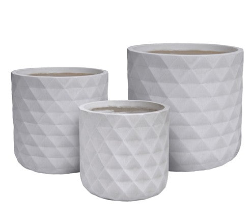 Sleek, modern, and neutral best describe these black or white diamond pattern fiberclay pots with drainage holes. A simple way to elevate your interior design game while showcasing your favorite plant.