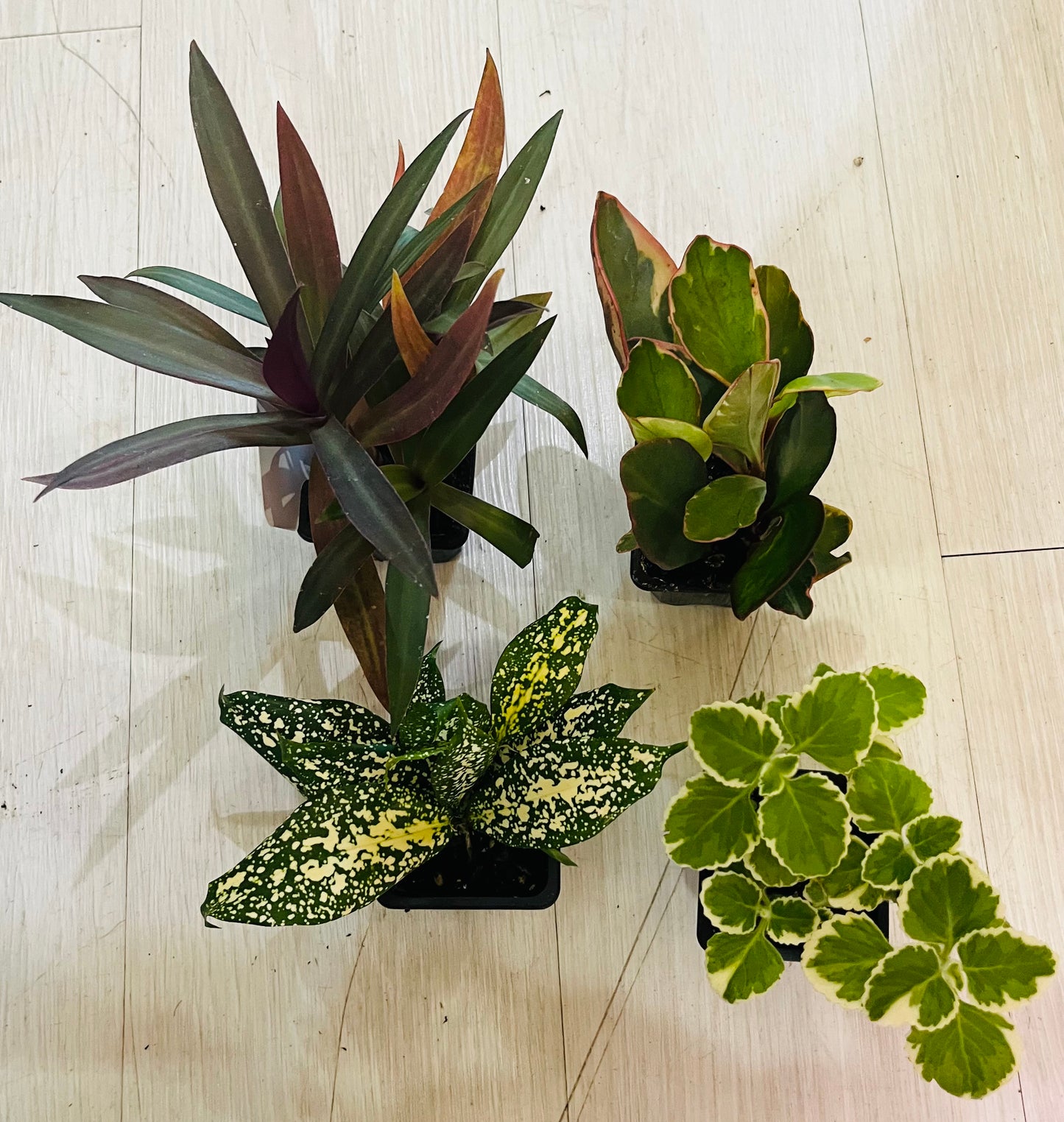 These starters come in all shapes, colors, and patterns from Alocasia, Ferns, Tradescantia, to Peperomia and everything in between. Don't be fooled by their small stature, they will get bigger!!