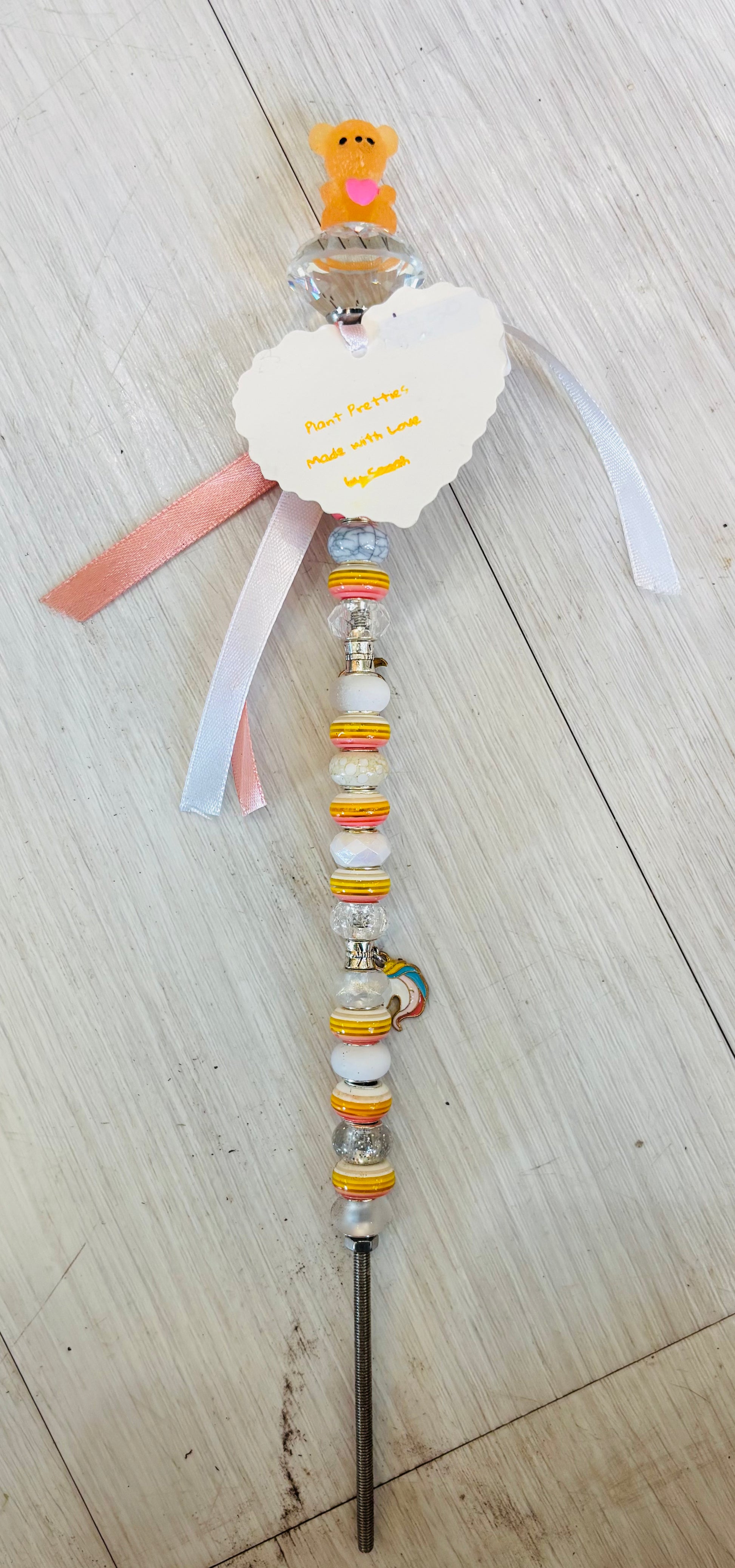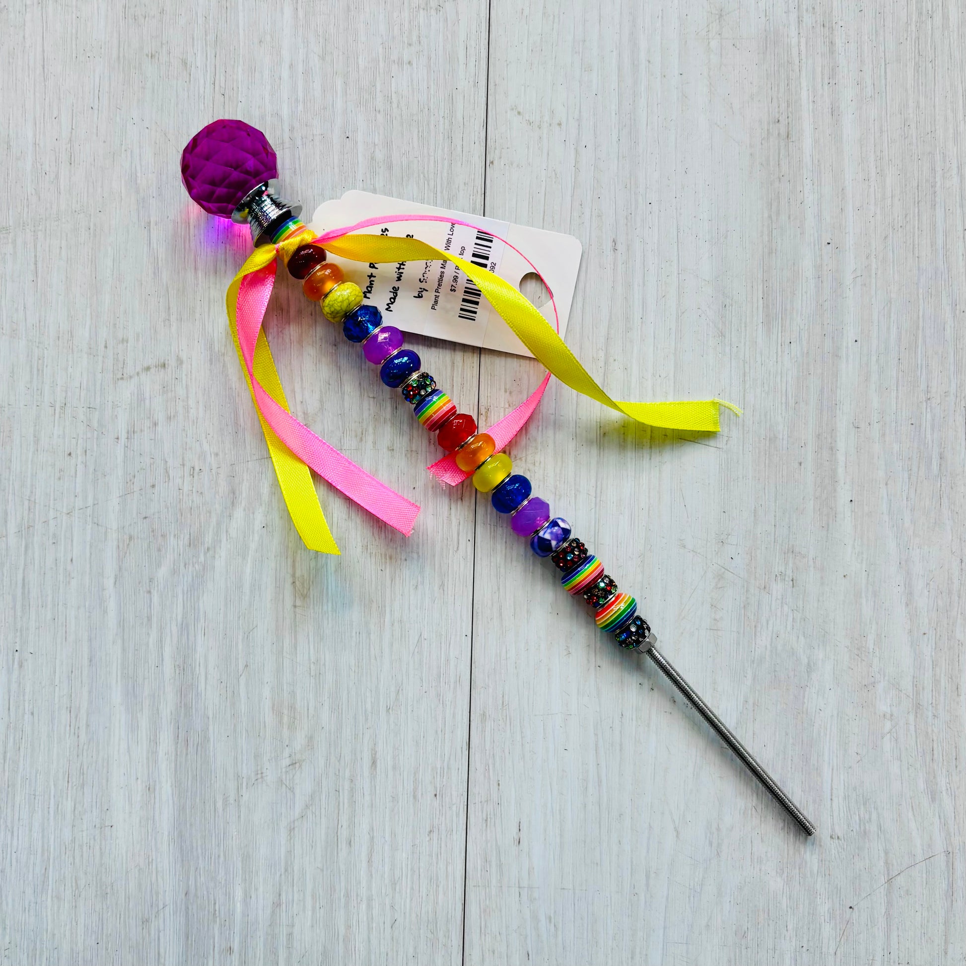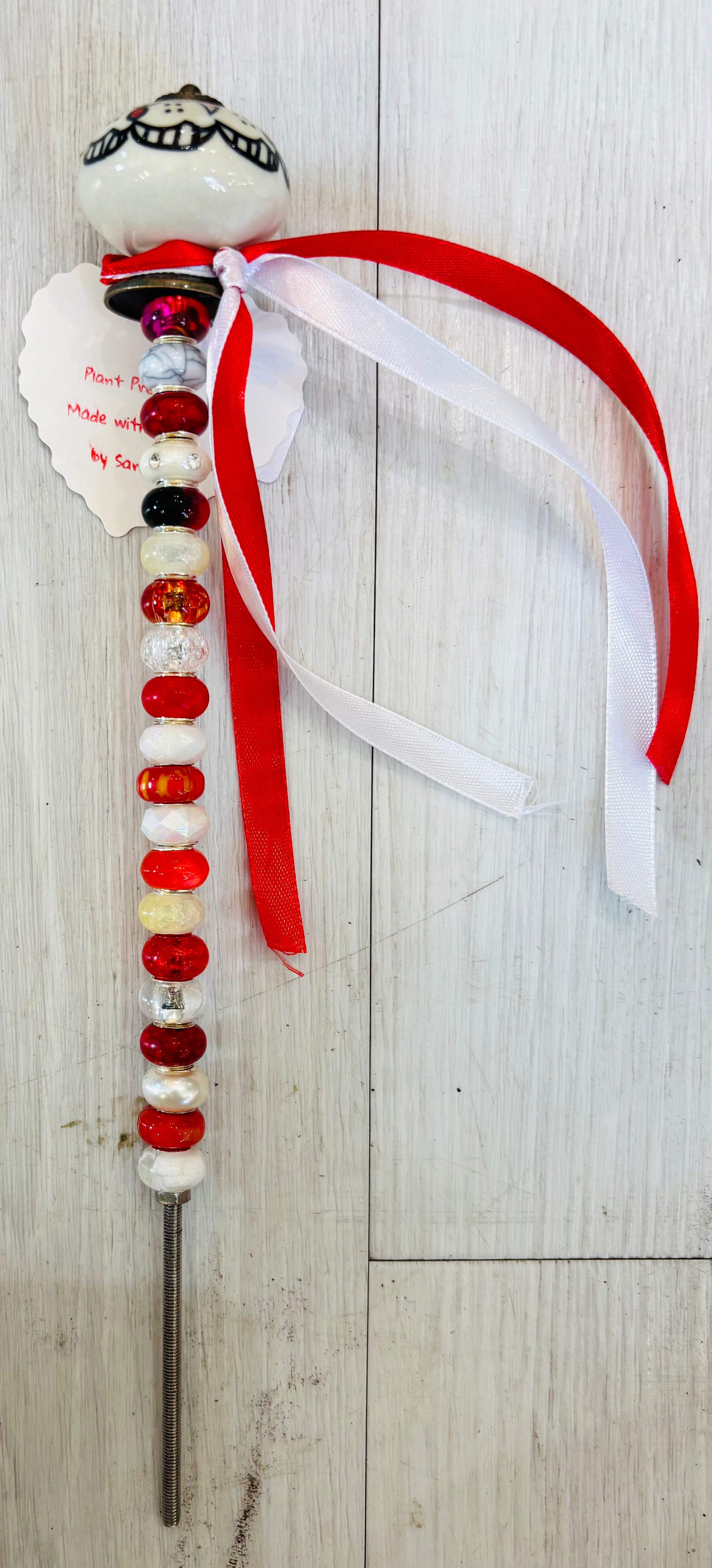 Cute plant picks to add along side your potted green friends. These plant picks are handcrafted by a local artisan from beads and easily push into soil for simple arranging. Display one or several for extra personality.