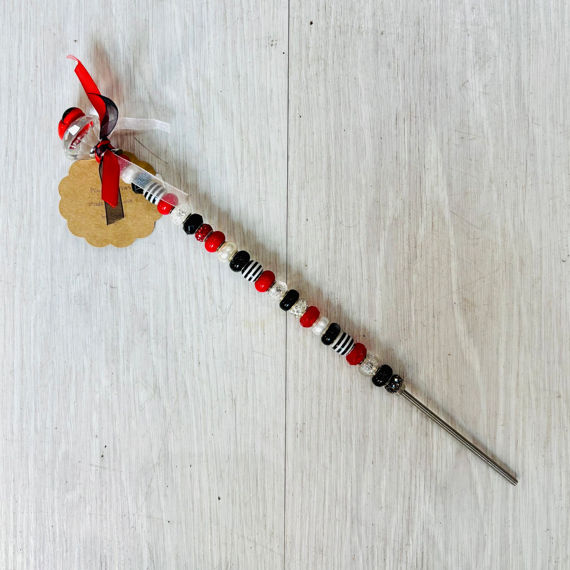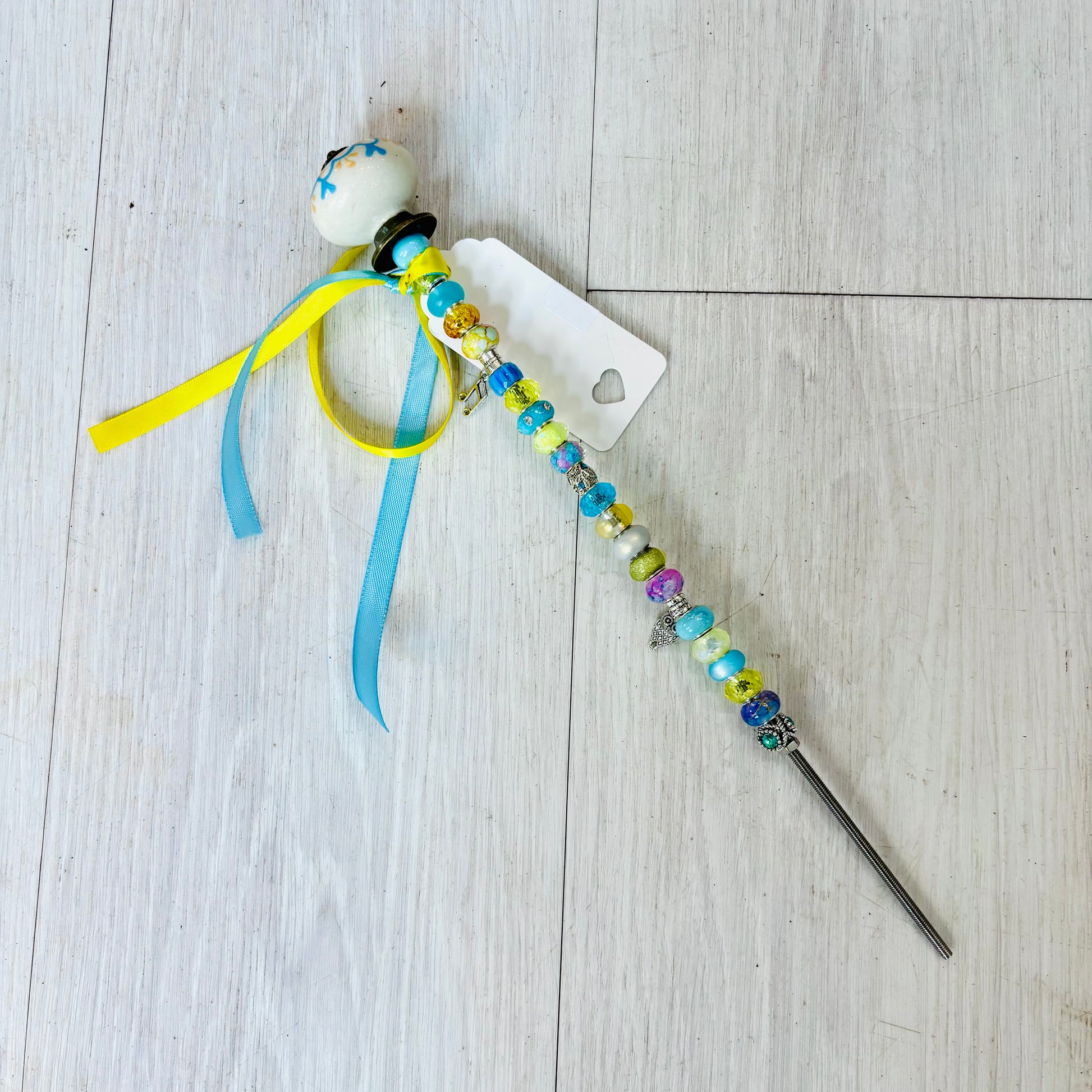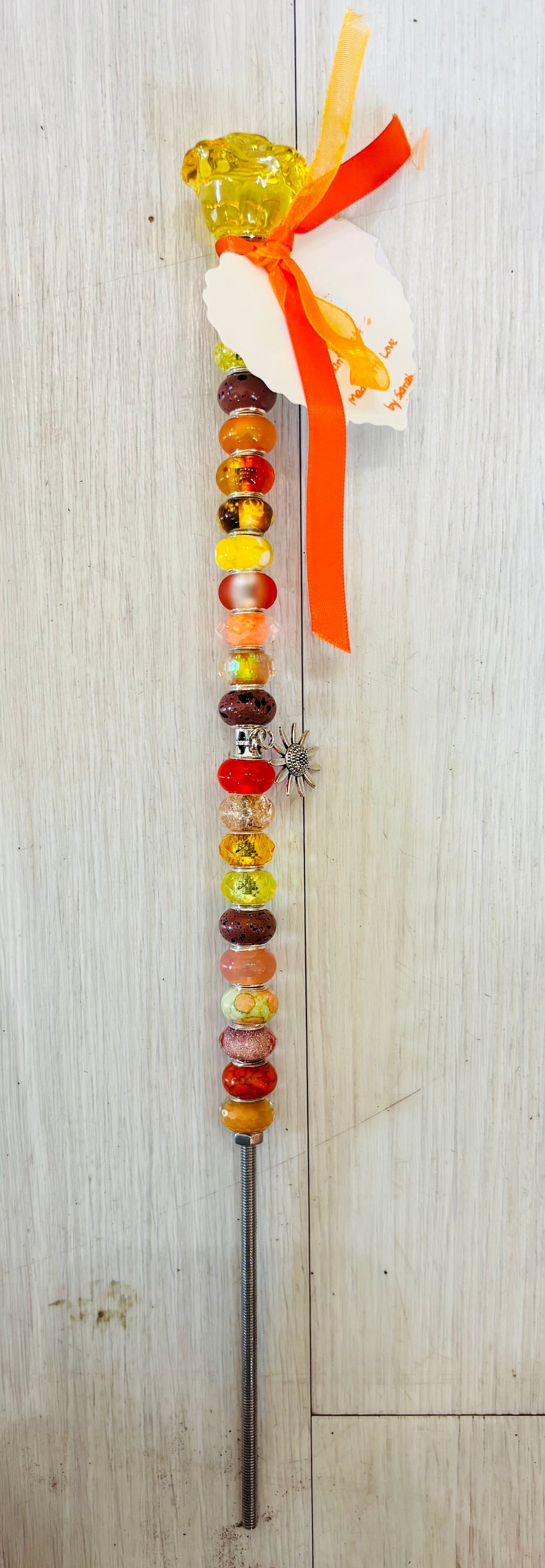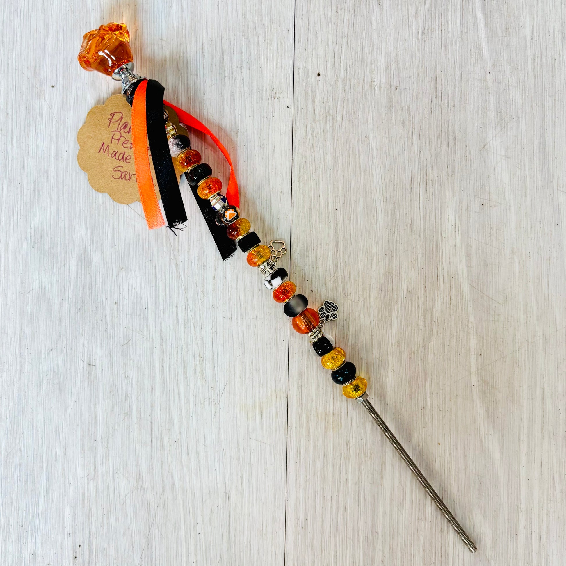 Cute plant picks to add along side your potted green friends. These plant picks are handcrafted by a local artisan from beads and easily push into soil for simple arranging. Display one or several for extra personality.