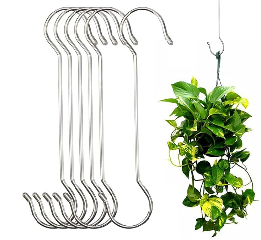 Heavy duty stainless steel plant hanging S hooks, 16" long.
