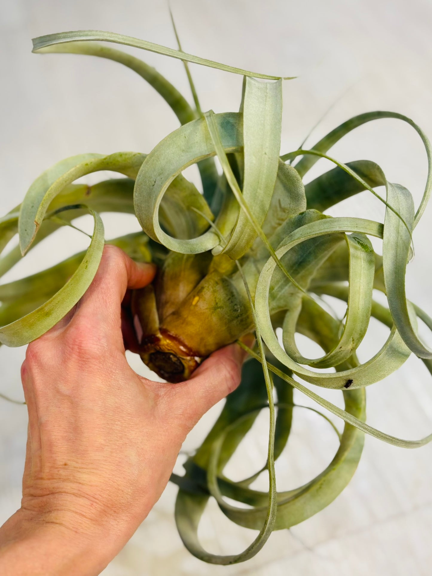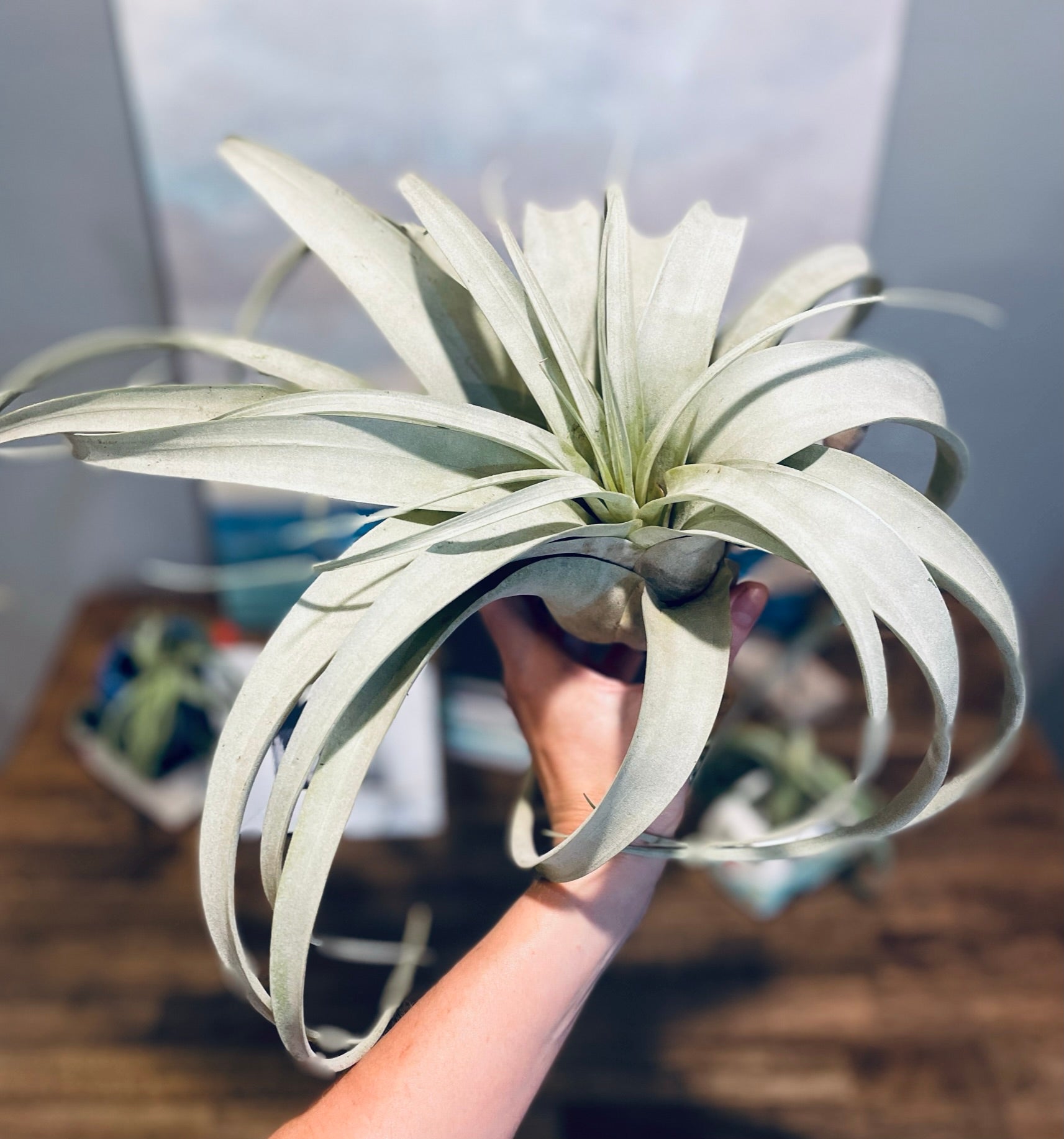 The Xerographica air plant is a true showstopper and the crown jewel of any plant collection! Known as the "King of Air Plants," it boasts stunning, silvery-green leaves that curl and swirl in an elegant rosette formation. These leaves have a soft, velvety texture and can grow impressively long, making the Xerographica a dramatic statement piece for any space.